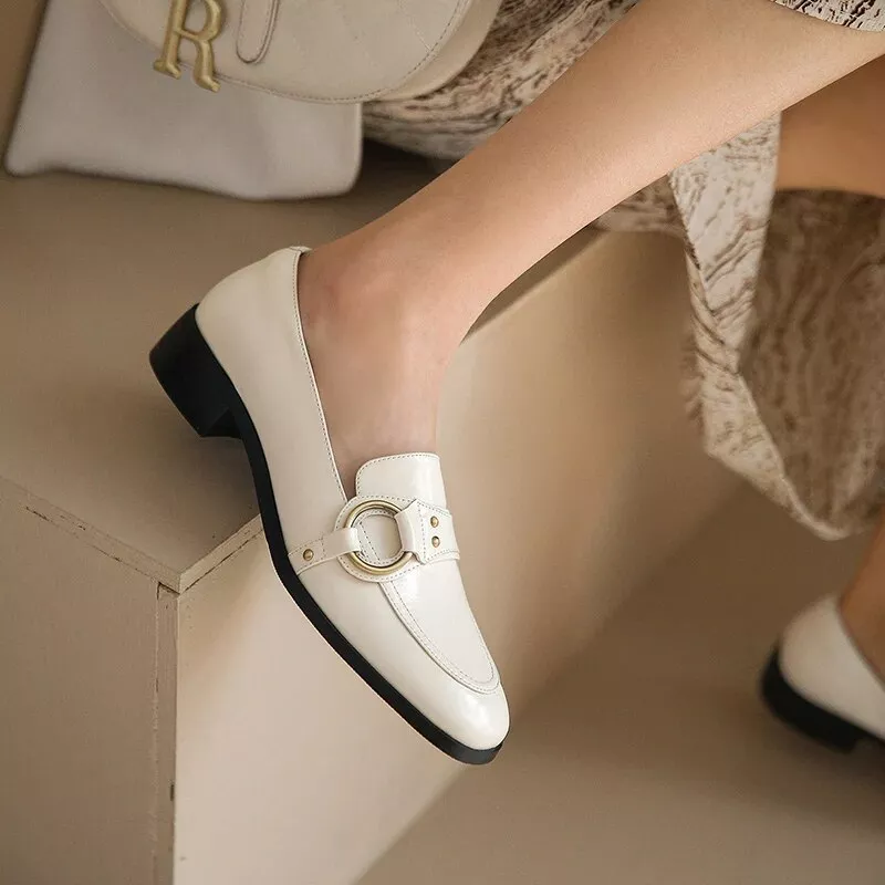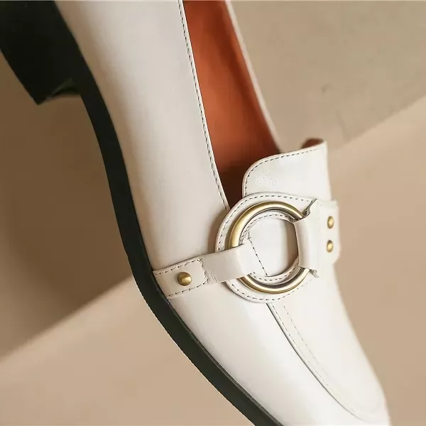 The design of the loafers seamlessly blends traditional elegance with modern sophistication. The square-toe and the chic buckle detail provide a contemporary edge that makes these shoes stand out in any setting, from corporate boardrooms to casual weekend gatherings. The ultra-light rubber foam sole impressed me with its balance of lightness and strength, offering stable support and a cushioned walk that belied the shoe's sturdy construction. The modest heel height added just enough elevation to flatter my silhouette without straining my feet, embodying the perfect harmony of form and function. What makes these loafers truly special, however, is their adaptability to various occasions and outfits. Their timeless design, available in off-white and classic brown, allows them to be effortlessly paired with a multitude of styles, making them a go-to choice for any event. The spacious interior, designed to fit true to size, accommodates the feet comfortably, ensuring that these loafers are as pleasant to wear as they are pleasing to the eye. Wearing these loafers has been a transformative experience. They have become more than just footwear; they are a vital component of my personal style, enhancing my everyday look with their understated elegance and superior comfort. The consistent quality and attention to detail in their construction make them a reliable and stylish choice for any occasion. The blend of retro charm and contemporary style they offer has not only enriched my wardrobe but also elevated my sense of fashion.